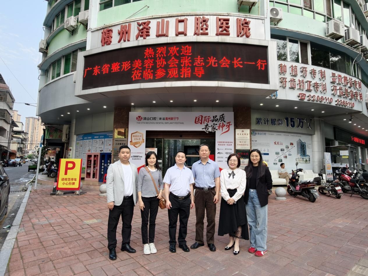▲广东省整形美容协会党支部书记张志光(右二)携党员参观泽山口腔医院总院