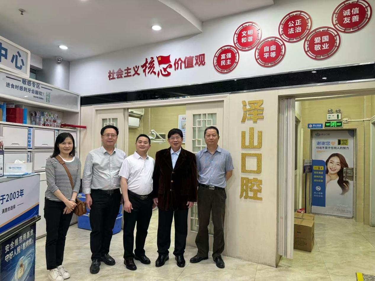 ▲广东省整形美容协会党支部书记张志光(右二)携党员参观泽山口腔医院总院